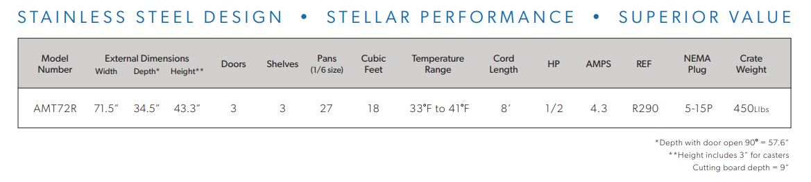 Arctic Air’s mega-depth ref. prep tables are designed to bring you real, commercial-grade performance at a truly incredible value. All Arctic Air commercial prep tables are tested to NSF 7 levels and must pass numerous quality control inspections throughout the manufacturing process.