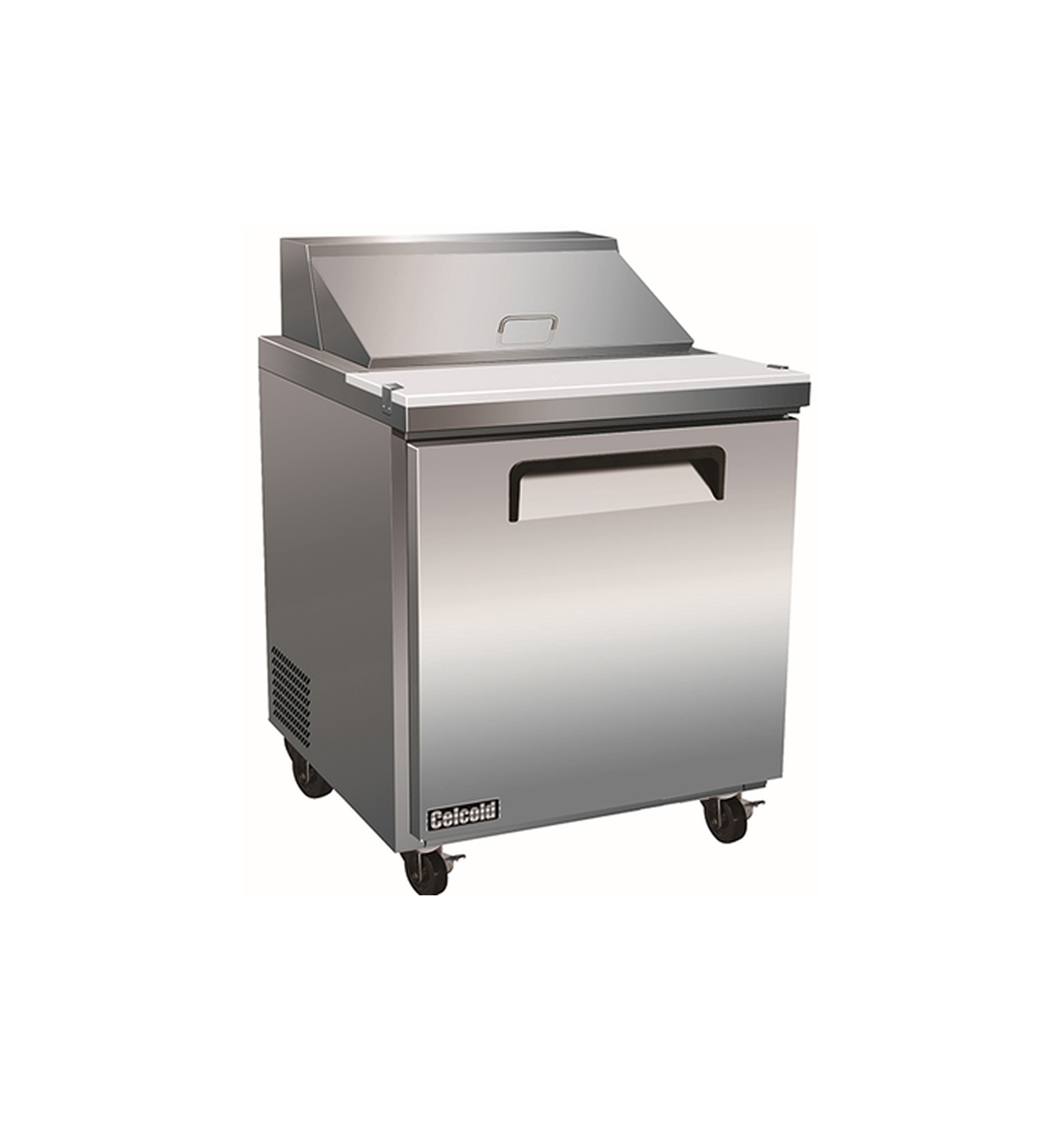 Refrigerated Mega Top Sandwich Salad Prep Tables Coolers are a powerhouse in commercial sandwich preparation. The large size allows for extra rows of pans meaning more ingredients and better meals. Refrigeration keeps the ingredients fresh and safe for customers. The wide prep space is perfect for pairing and preparing ingredients. With multiple sizes all on wheels you can have a flexible kitchen that meets your customers hunger, and your space necessities.