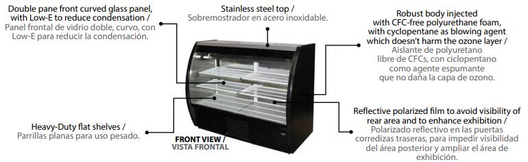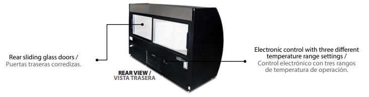 Reflective polarized film on rear glass doors to avoid visibility of back area and to enhance exhibition .