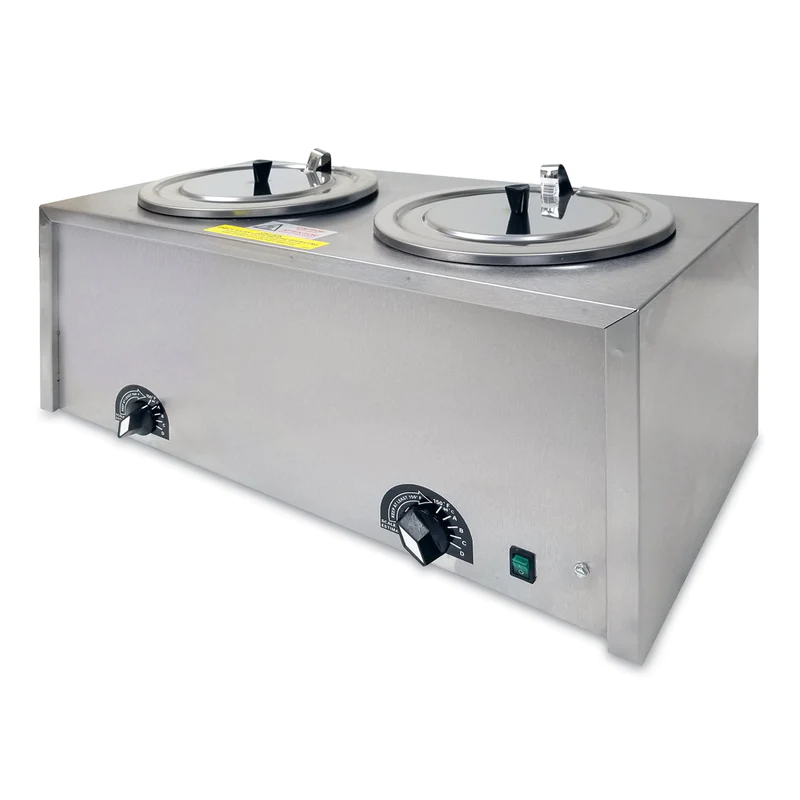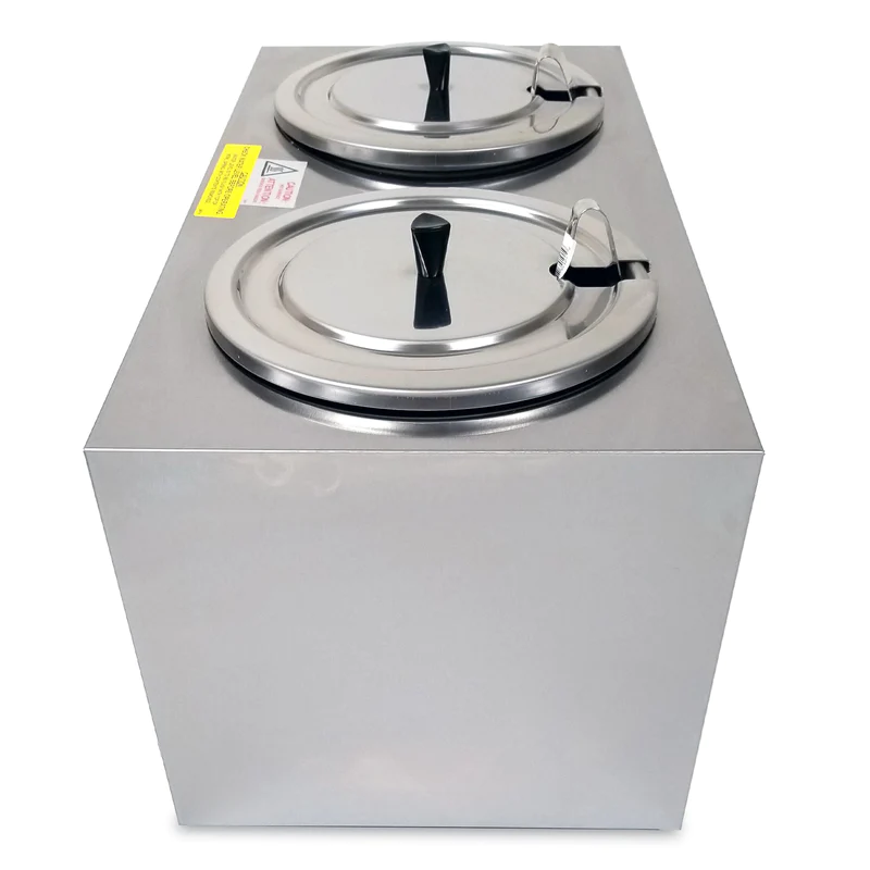 Double up on your nacho cheese to scoop up even more in nacho sales. The Twin Nacho Cheese Warmer #4211 allows you to serve out of one side, while the other warms up cheese. This cheese warmer is compatible with #10 cans of cheese sauce. Recommended for use with the #2194 stainless steel insert bowls (two needed). If you are a high-volume vendor, this is the perfect nacho cheese warmer for you! Works great for caramel apple dip and fudge.