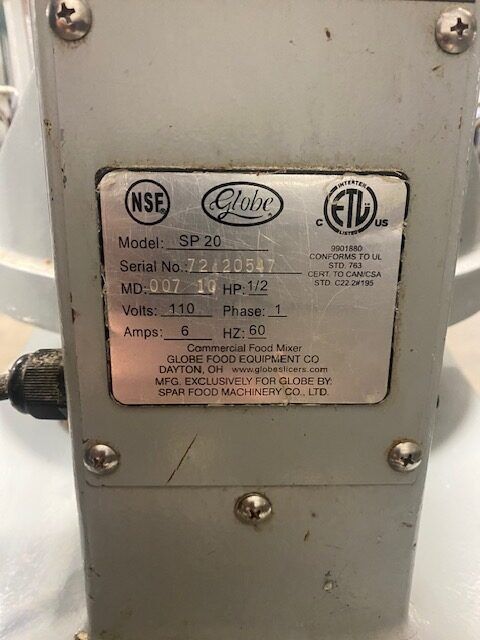 You are viewing a nicely used and well maintained commercial Globe 20 Quart Mixer. This SP20 model has been tested and works perfectly. It includes all the attachments shown in the picture. It measures 16″ W x 19″ D x 35″ H. Power supply is 110V 10 Amps. These sell new for $4,000+. We also sell other new models and have financing options. Our Clearance Warehouse is located in the Foothills Industrial Park #5, 6613 – 44th Street SE, Calgary, AB. Open Monday to Friday 9am to 5pm.