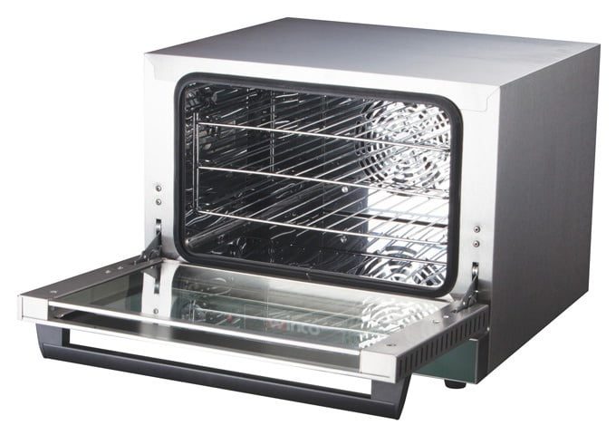 This convection oven features a spacious interior with (3) chrome wire shelves that are perfectly sized for cooking small batches of pizza, baked goods, and warm sandwiches. Thanks to its stainless steel construction, this highly durable, easy to clean countertop oven can tackle the toughest cooking needs while its dual pane tempered glass door allows you to monitor the baking progress. Boasting a built-in 120-minute timer, this high quality convection oven allows you to customize a cook cycle depending on your needs.