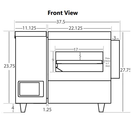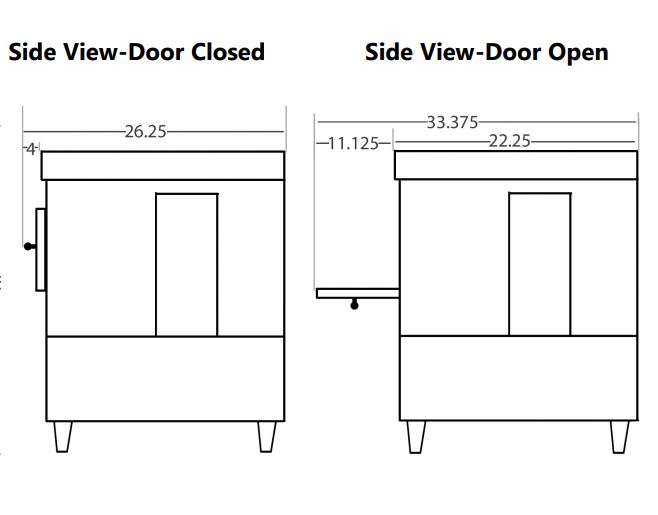 Outside Dimensions: 37.5″W x 27.75”H x 26.25″D (33.375” with door open)