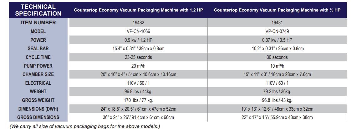 Ideal for a variety of applications, Omcan’s vacuum packaging machine is equipped with a digital control panel that controls the sealing temperature, sealing time, drawing air time, and cooling time. Once the lid is closed, the machine automatically starts the sealing process.
