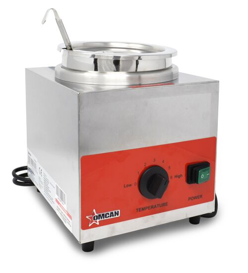 This commercial-grade countertop stainless steel food warmer with a 3.5-quart capacity is ideal for snack bars, concession stands, cafeterias, buffet lines, and other foodservice operations. Equipped with an adjustable thermostat, it efficiently heats and maintains optimal serving temperatures for cheese sauces, caramel, fudge, gravy, chocolate, and other warm condiments. Its compact design and durable stainless steel construction make it a reliable choice for high-demand environments that require consistent performance and easy dispensing.