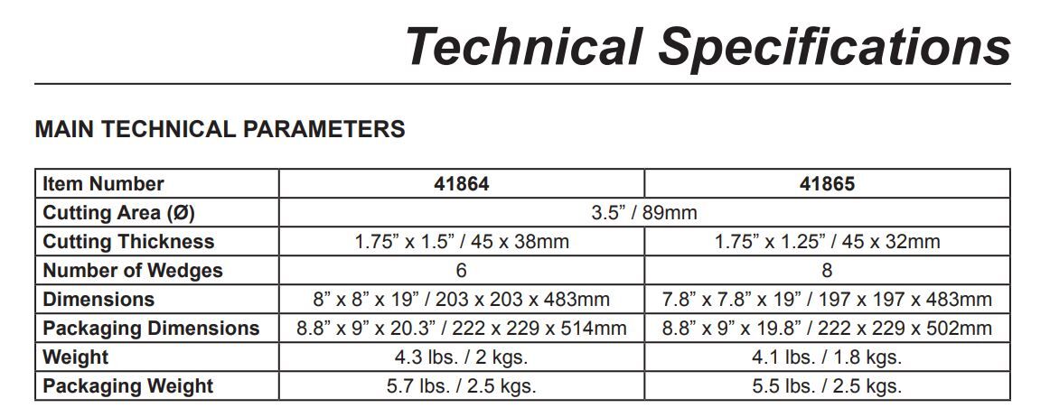 Cut fruit and vegetable wedges perfectly every time with the Omcan Vertical Wedge Cutter. This cutter features sharp stainless steel blades that minimize bruising and squeezing. This product is great for cutting lemons, limes, potatoes, oranges, and tomatoes.