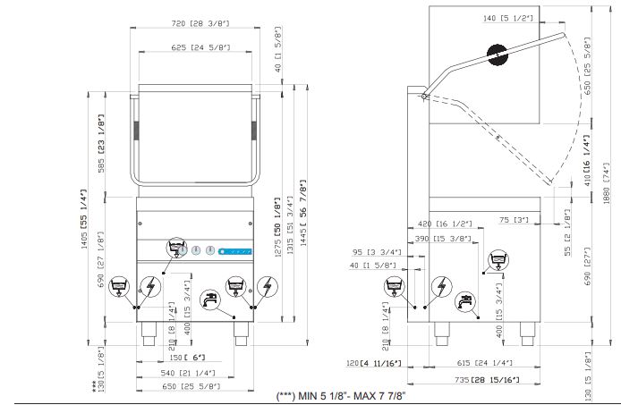 The DIHR hood-type dishwashers offer a wide range of models, from the ones that can be equipped with the most advanced options, to the most innovative types, designed with avant-garde electronics and with all options included.