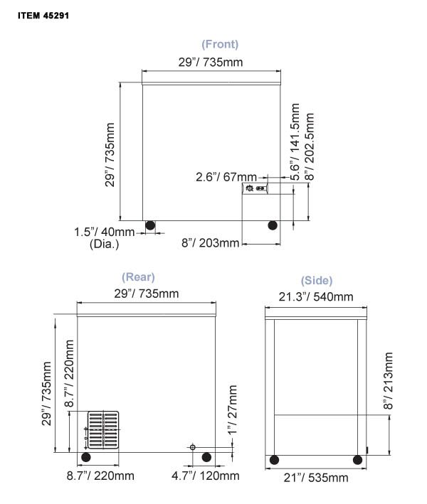DIMENSIONS (DWH) – 21.3″ x 29″ x 30.5″ / 540 x 735 x 775 mm