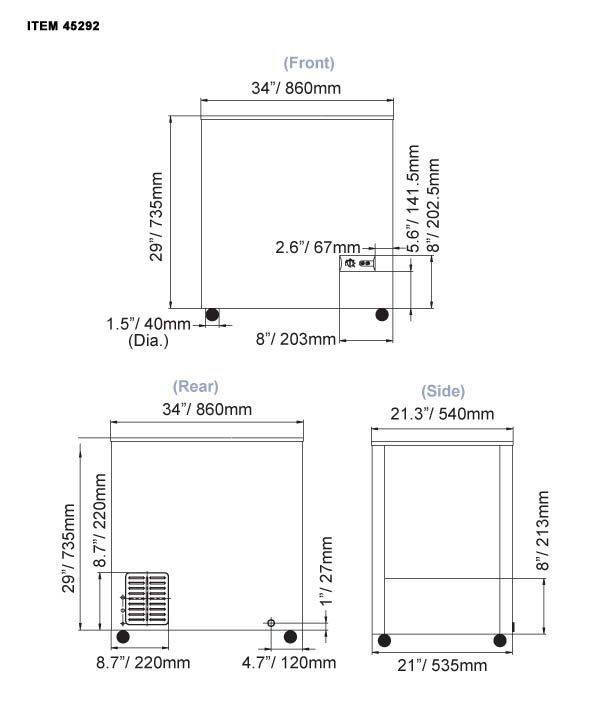 DIMENSIONS (DWH) – 23.6″ x 45.7″ x 30.5″ / 600 x 1160 x 775 mm
