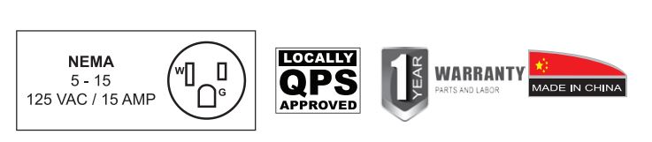 ELECTRICAL: 120V / 60Hz / 1Ph