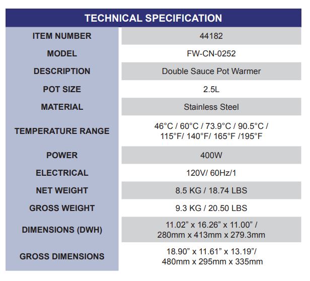 Omcan’s Double Sauce Pot Warmer keeps your toppings and sauces at optimal temperature for your customers.