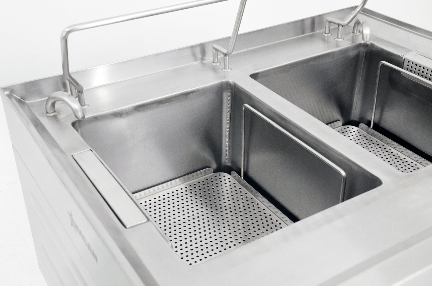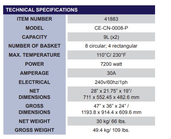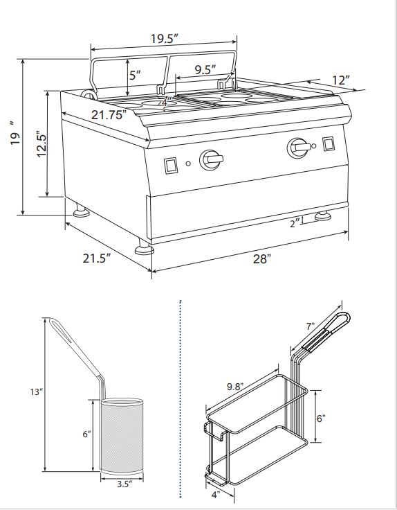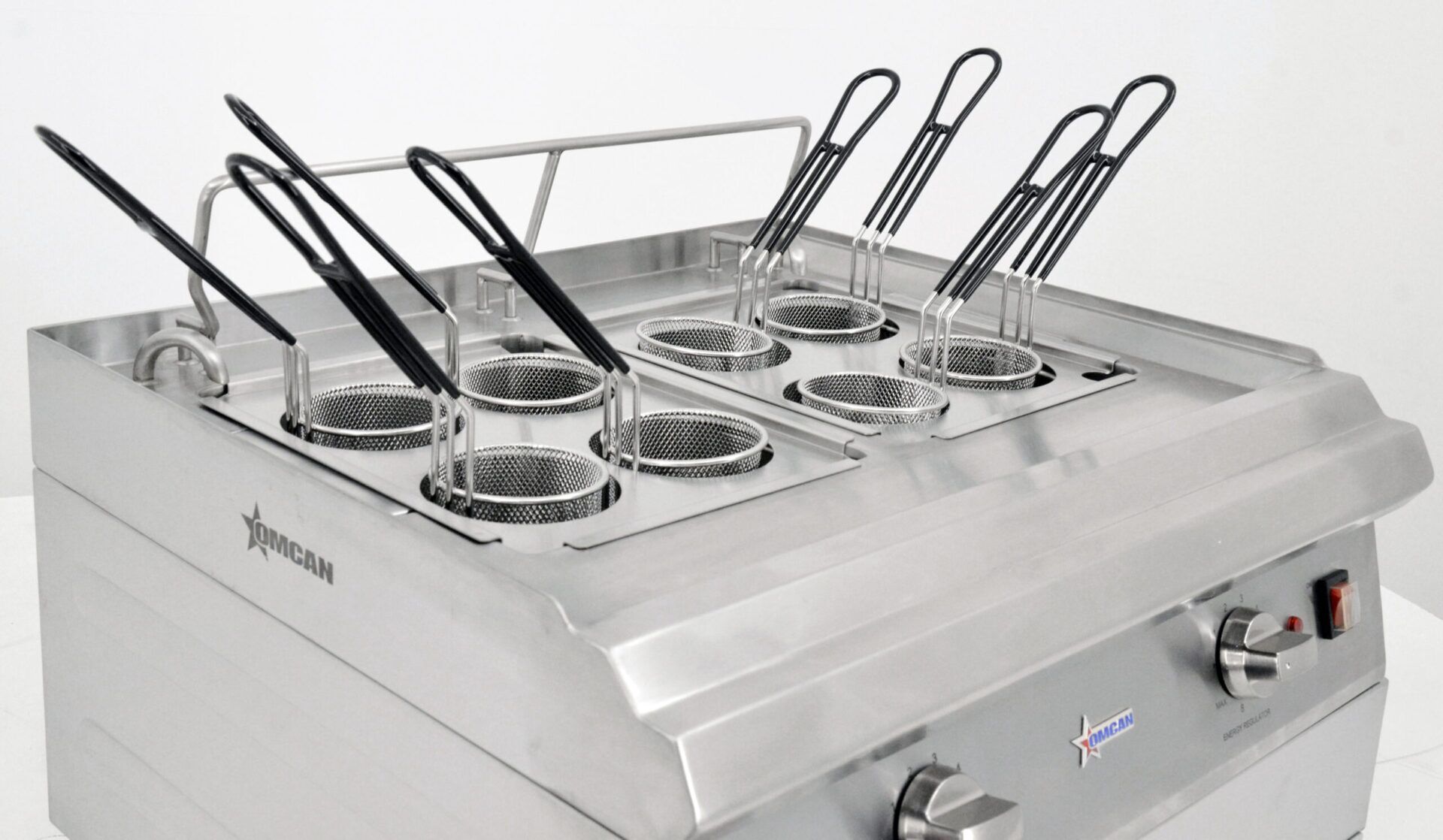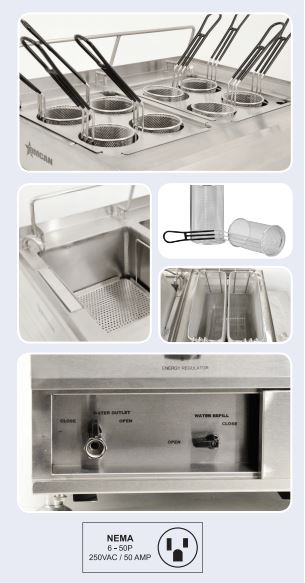 The CE-CN-0008-P electric pasta cooker will give you the reliability you’re looking for during prep in your restaurant. This durable stainless steel unit will keep stationary while you work on your signature pasta dishes with their non-slip feet. It has two tanks and 8 baskets. This model includes a front sliding door for easily accessible and convenient water refill and waste outlet.