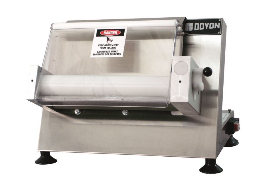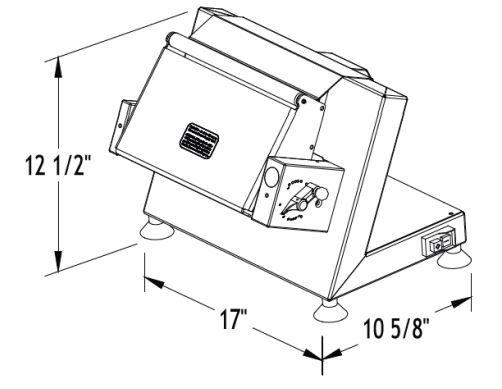 Dough Sheeter, Countertop, One (1) Sets of Rollers, Sheets up to 12” Wide, Up to 600 Pieces Per Hour, Teflon Rollers, Adjustable Roller Gap, Stainless Steel Scraper, Stainless Steel Construction, 1/2 HP Motor, cETLus, ETL-Sanitation