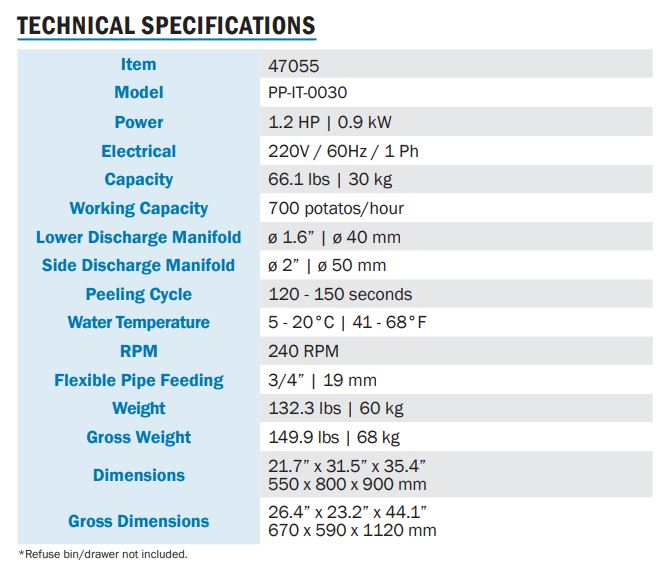 Omcan’s Potato Peeler is ideally suited for restaurants, busy kitchens, and hotels. Designed to handle 30 lbs of potatoes, and made from AISI 304 stainless steel.