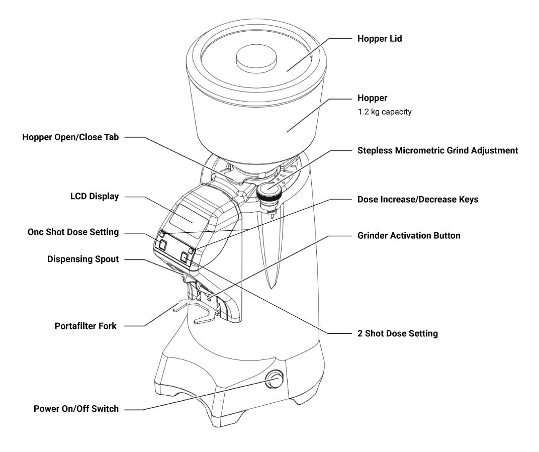With a ø65mm flat burr made out of tempered steel makes the burrs durable. The LCD display allows users to adjust the grinding time, making it easy to get the exact amount of grinds for single- and double-shot grinds.
