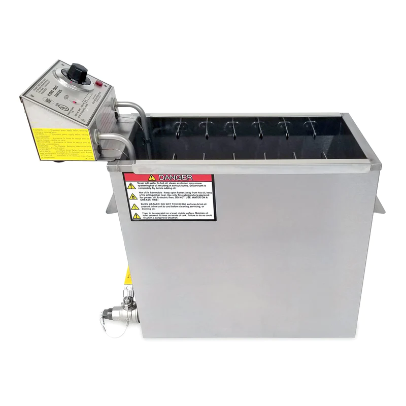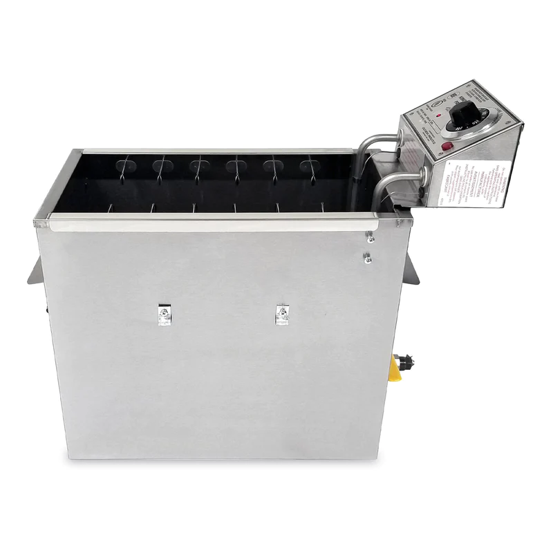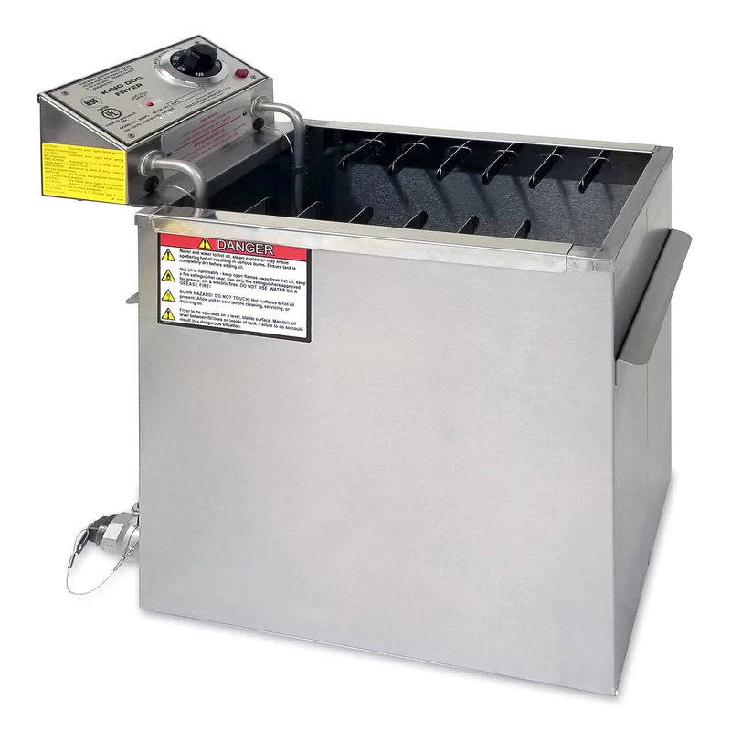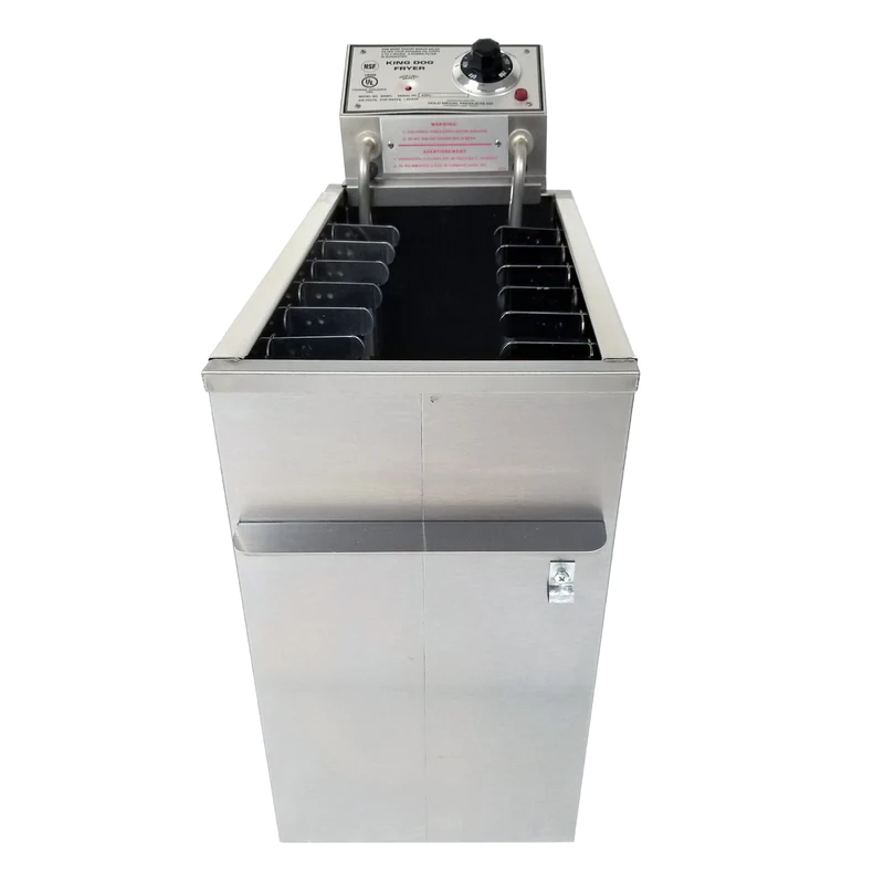 Now you can choose which King will rule your corn dog cooking! The Foot-Long King Dog Electronic Corn Dog Fryer #8068FL is the only electric fryer on the market that can successfully handle a foot-long-sized corn dog and 50 lbs. of oil. The Foot-Long King also comes standard with two six-position Skewer Clip Assemblies.