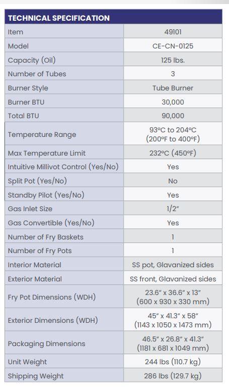 This Natural Gas Fryer makes a powerful and efficient fryer. It is designed to handle large volumes, making it ideal for commercial kitchens, carnivals, and food festivals. Its robust natural gas burners, ensure even heating and consistent frying results, perfect for producing crispy and delicious funnel cakes and donuts. Elevate your culinary offerings with this high-performance fryer, engineered for excellence and reliability.
