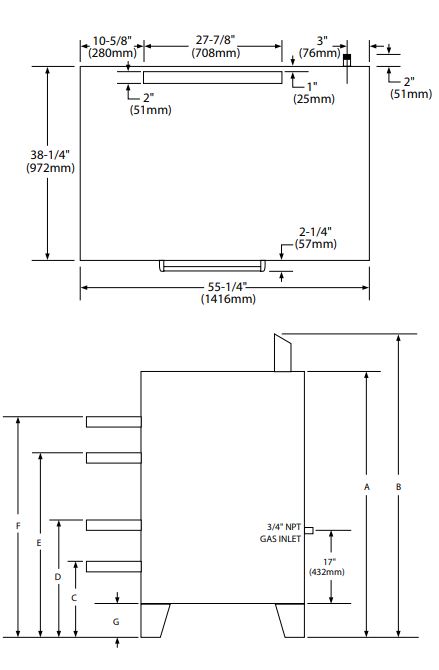 Dimensions: 55 1/4″ W x 38 1/4″ D x 50″ H / 140.3 cm x 97.2 cm x 127cm