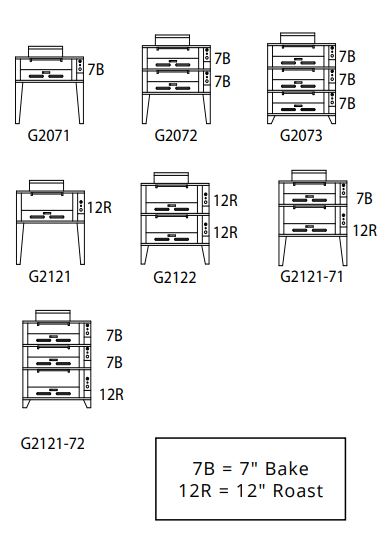 Choose the G2000 ovens for operations that require even baking and roasting. The traditional 7″ bake oven features “stone” hearths for the most even bake. The 12″ ovens can handle the heaviest roast pans on a 12 gauge steel hearth. With 1,350 sq. inches of hearth space, and stackable 3 high, the Garland variety bake roast ovens can handle the most demanding production needs.