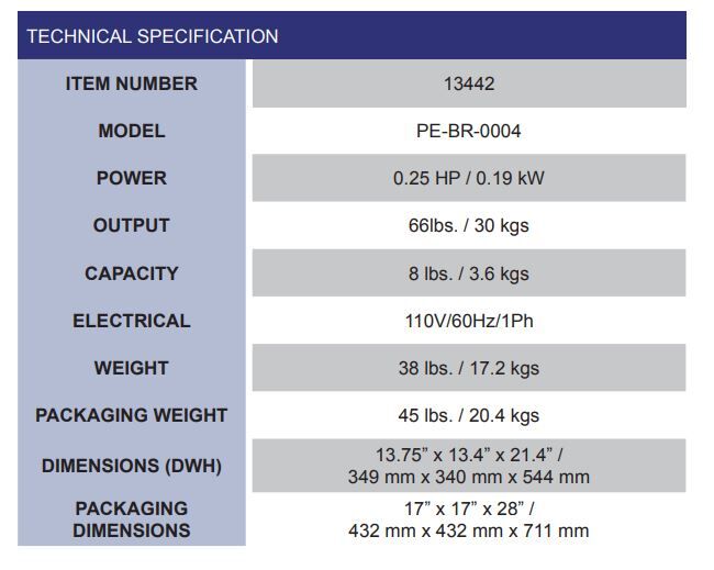 Power: 0.25 HP / 0.19 kW