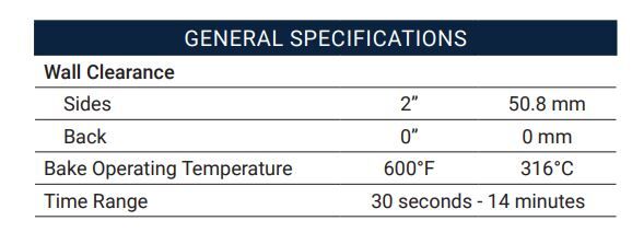 Bake Operating Time 550°F | 288°C