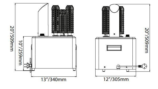 Dimensions 13” x 12” x 20” / 340 x 305 x 509 mm
