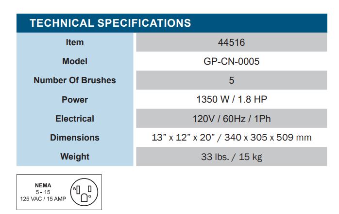 Electrical 120V / 60Hz / 1Ph