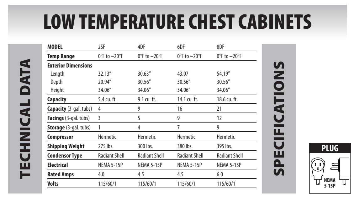 Globals low temperature chest cabinets manufactured using the patented Kelvinator refrigeration design are legendary for quality, reliability, durability and top performance. The chest cabinets are designed to be virtually maintenance free and provide whisper quiet operation via the radiant shell and non-clogging condenser. The product line offers single and double row models in a variety of sizes.