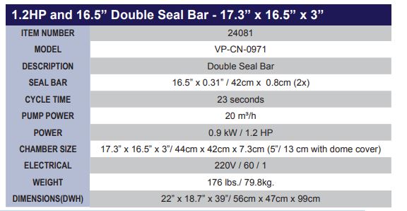 Heavy-duty Vacuum Packaging Machine with 1.2 HP and 16″ Double Seal Bar 24081 Features