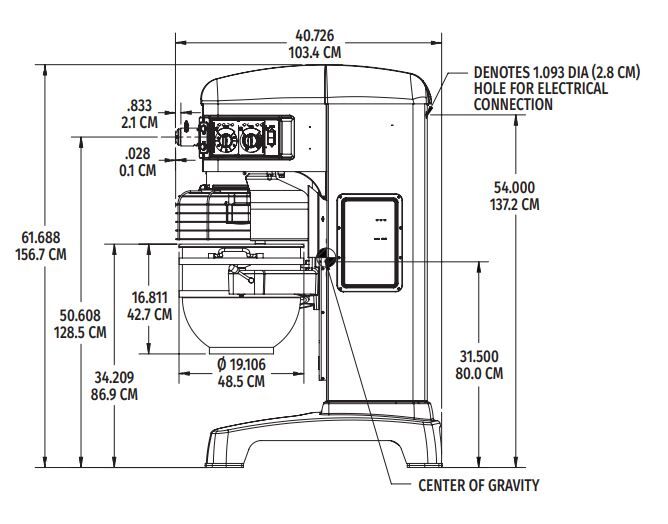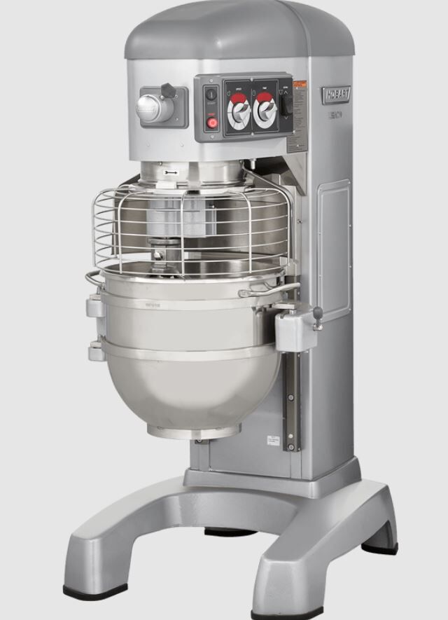 Specified mixer will be an NSF rated 60-quart maximum heavy-duty, all-purpose mixer with Hobart PLUS System, four fixed speeds plus a stir speed. Mixer has 2.7 HP output at the planetary shaft and gear transmission. Features include automatic time recall, swing-out bowl, Shift-on-the-Fly™ controls and power bowl lift. Mixer finished with a metallic gray hybrid powder coat and has a stainless steel bowl guard.