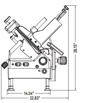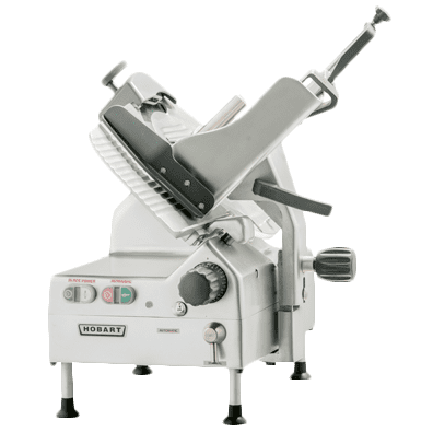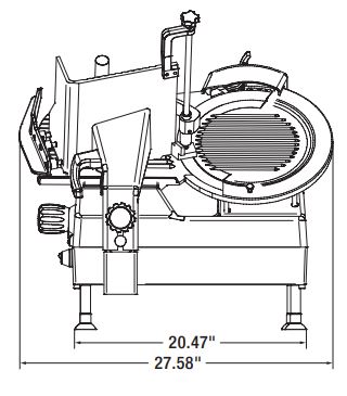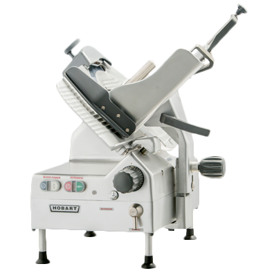 Specified slicer will be an NSF rated medium duty manual/automatic EDGE slicer with a 13″ diameter chrome-plated carbon steel knife and a Poly-V belt drive system. Slicer offers a removable carriage system, a top-mounted, removable ceramic stone sharpener and a permanently mounted ring guard. Features a ½ HP motor, 1 speed and no-volt release. Base is constructed from sanitary anodized aluminum to limit crevices and allow for easy clean up.