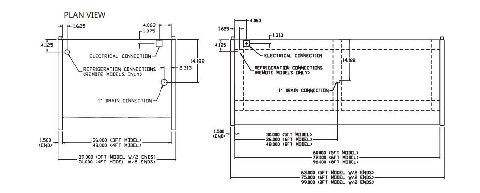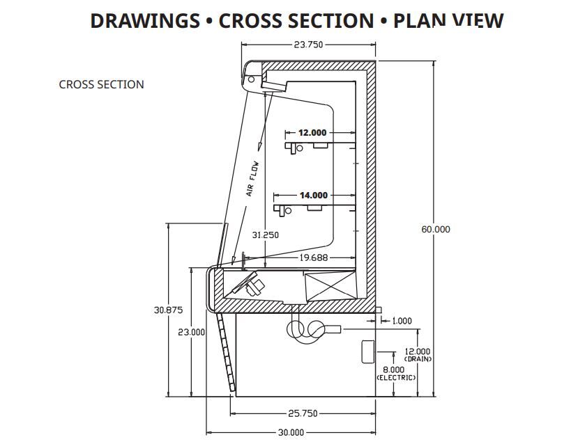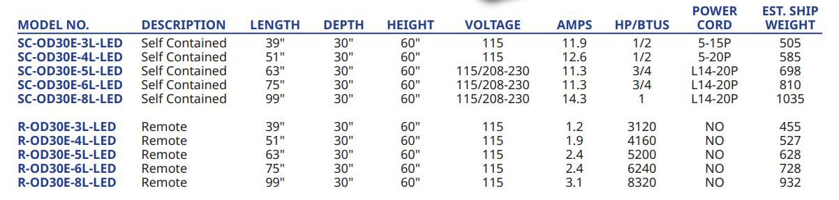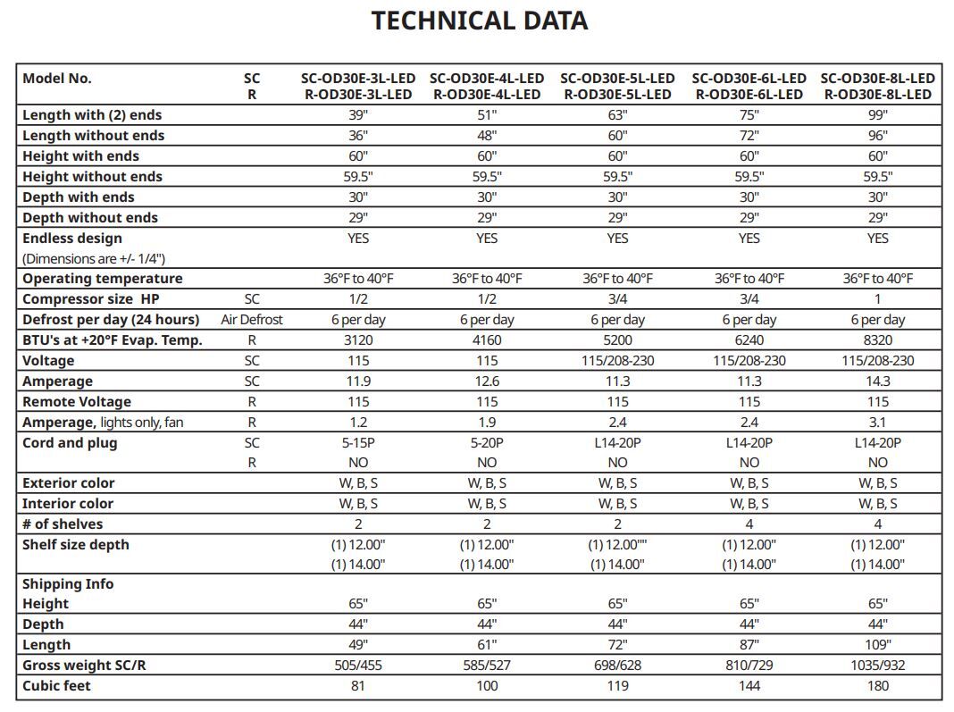 Dairy Open Merchandiser, 51″W, 60″H, self-contained refrigeration, (2) rows of lighted shelves, LED lighting, removable ends for continuous line-up, (drain required), stainless steel exterior & interior, 1/2 HP, 115v/60/1-ph, 12.6 amps, cord with NEMA 5-20P, cULus, UL EPH Classified, UL-Sanitation