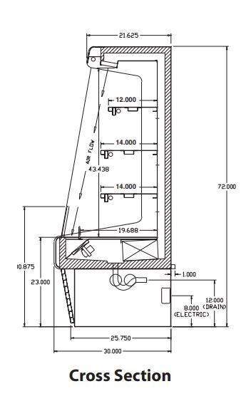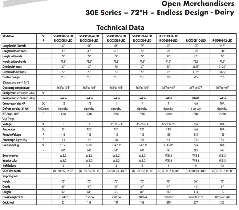 Dairy Open Merchandiser, 48″W, 78.5″H, self-contained refrigeration, (4) rows of lit shelves, LED lighting, straight plexi end panels, (drain required), black exterior & interior, lighted canopy, 3/4 HP, 115/208-230v/60/1-ph, 13.0 amps, cord & plug, NEMA L14-20P, cULus, UL EPH Classified, UL-Sanitation