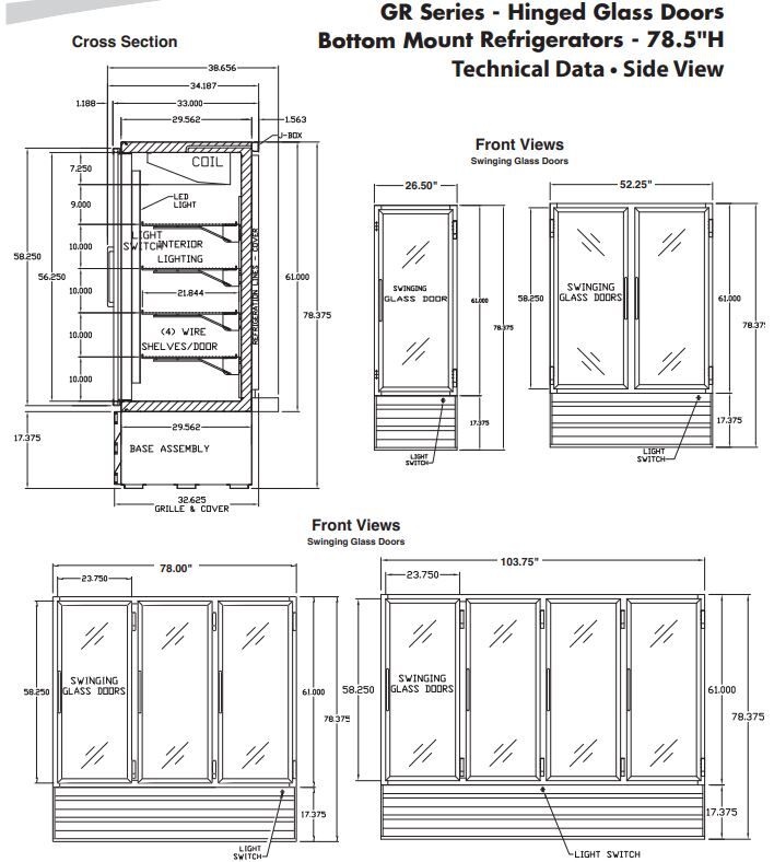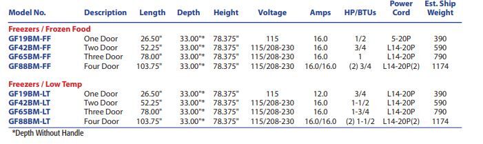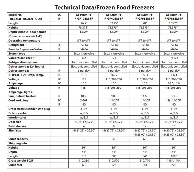 The Howard McCray GF65BM-B-FF-LED three-section freezer operates with expansion valve technology. Its bottom-mounted refrigeration system is self-contained for simple installation and cools with R448A refrigerant. This unit’s automatic defrost function rids the cabinet of ice. Users can adjust the temperature within the range of -5 to 5 degrees Fahrenheit with its electronic controls. The exterior and interior are black to provide an attractive look.