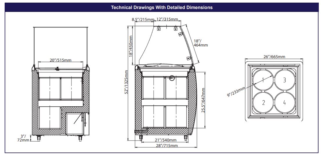 GROSS DIMENSIONS: Cabinet: 26″ x 30″ x 37″ | Glass Canopy: 26″ x 23″ x 0.5″