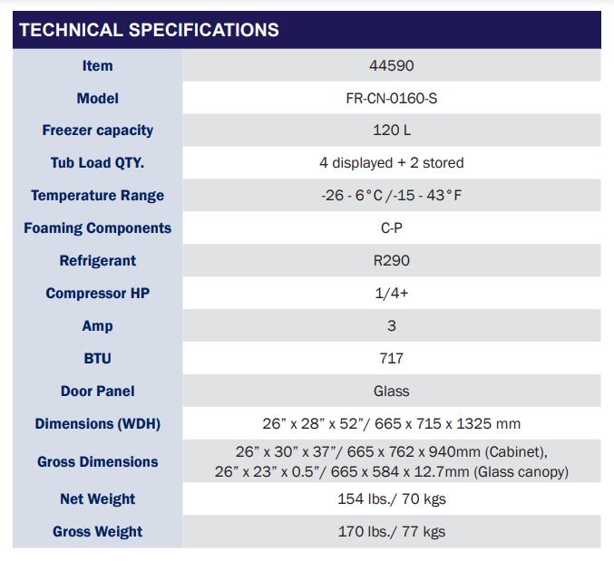 TEMPERATURE RANGE: -26°C to 6°C / -15°F to 43°F