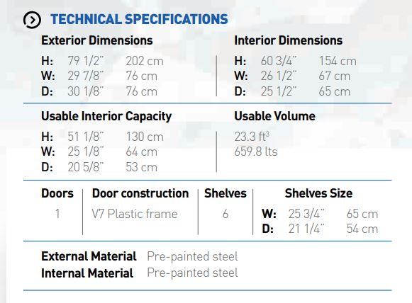 Interior Dimensions: 60 3/4″ H x 26 1/2″ W x 25 1/2″ D