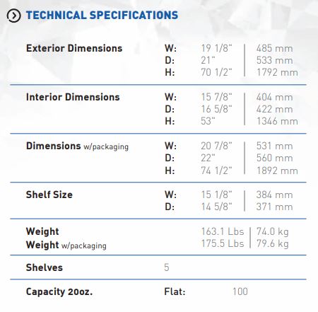 Interior Dimensions: 53″ H x 15 6/7″ W x 16 2/3″ D