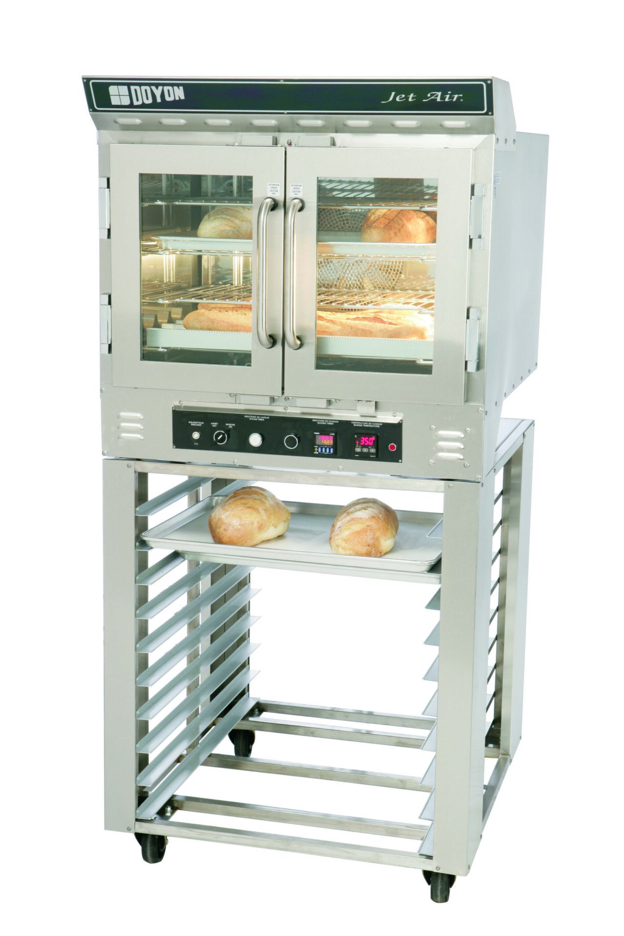 Jet Air ovens have a unique and patented Jet Air system that bakes faster and more evenly without having to turn pans half way through the bake. The air moves in one direction, stops, then moves the opposite direction producing exceptional baking results. The Jet Air fan system will save energy and labor. These ovens can bake or cook a wide range of products. To get the results you really want, they come with a fan delay for delicate products. The steam injection system gives you a precise mist for the best crusty breads, bagels, french baguettes and more!
