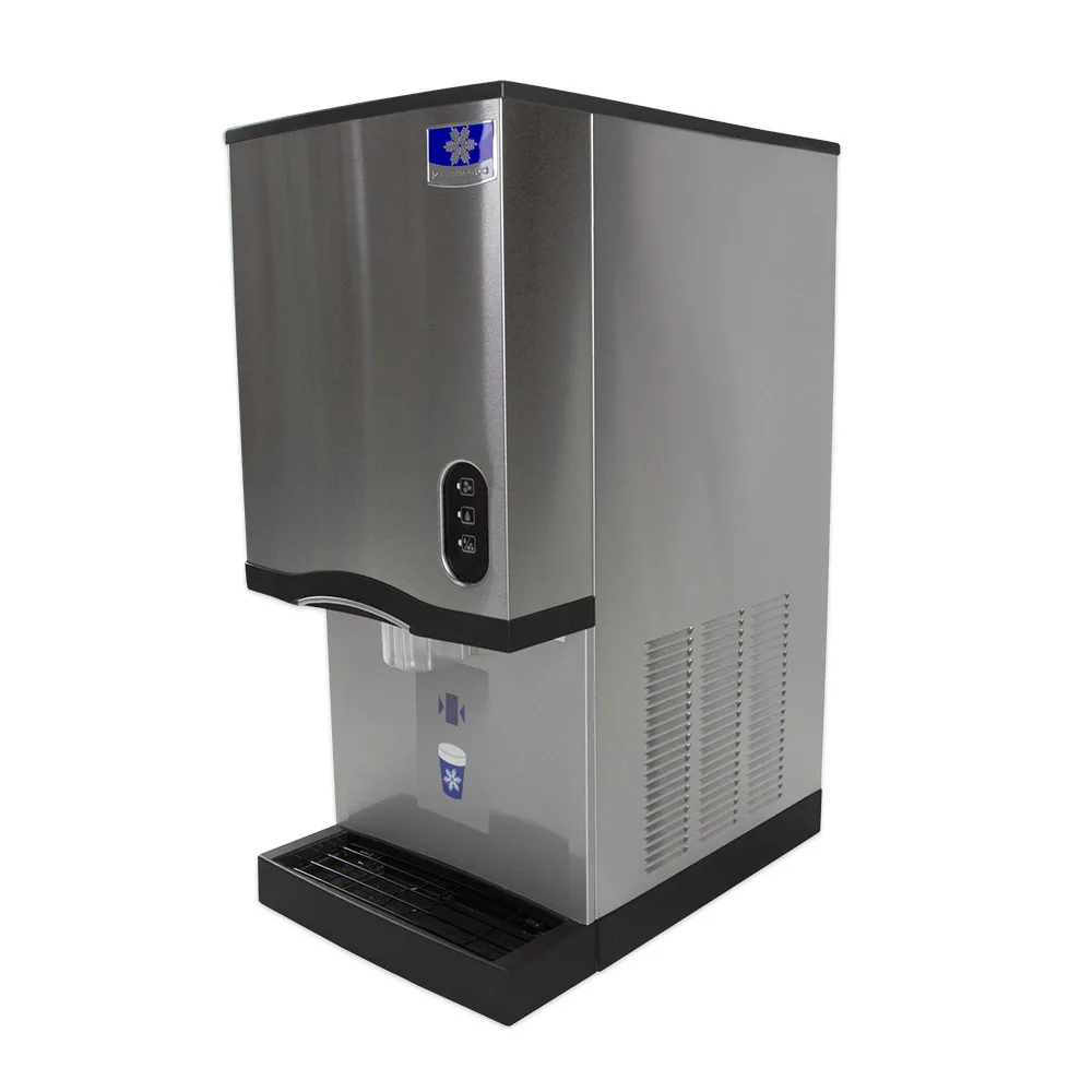 The Manitowoc Ice CNF0201A countertop ice and water dispenser works great in a variety of settings, such as hospitals, cafeterias, offices, and lobbies. Its nugget ice is a popular choice among customers because its chewability and size ensure it is ideal for casual consumption. Effectively helping customers see what they’re pouring, the dispenser’s blue LED light illuminates it in areas with low ambient lighting. In case of spills, a large drain pan rests below the dispenser, and the DuraTech™ front panel resists hardwater staining and can be wiped clean.