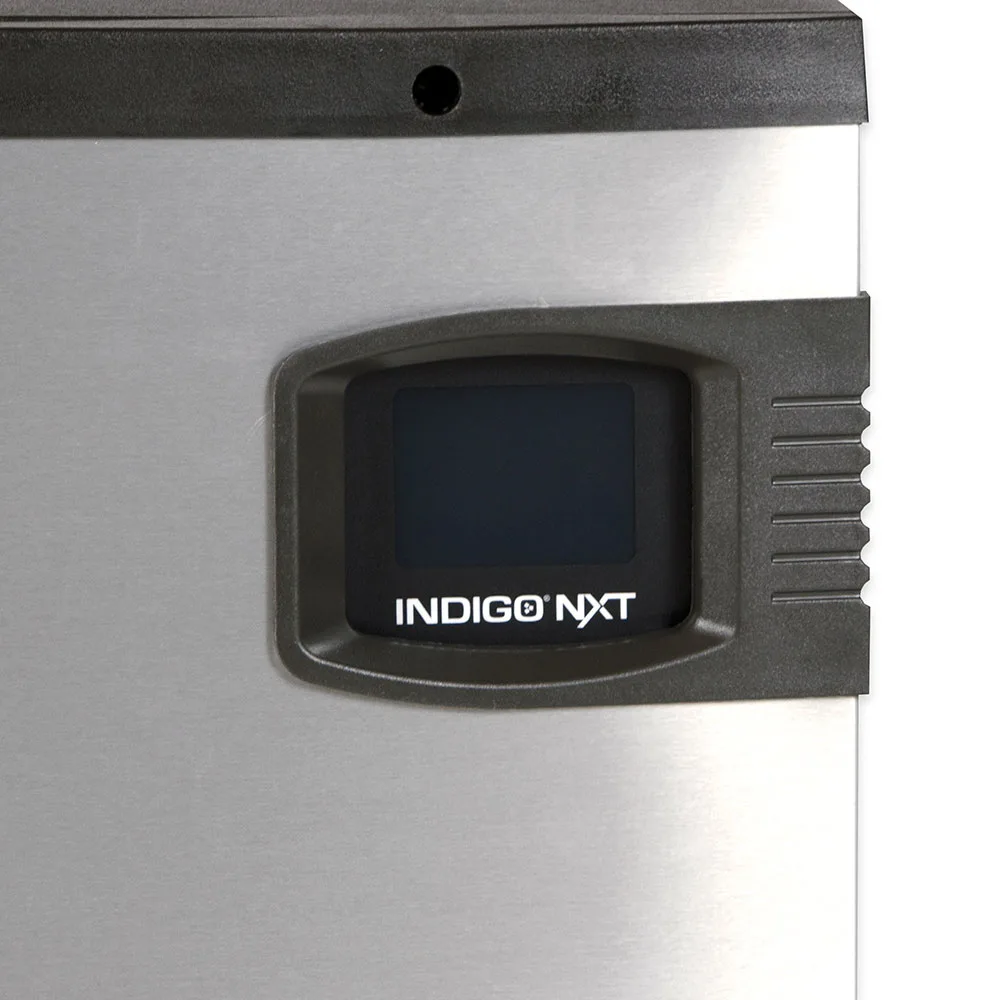 This Manitowoc Ice IDT0420A full-cube ice machine head is operated through an icon-based touch screen and can be programmed to turn on and off at certain times of the day or by ice production amount. Featuring R410A refrigerant and self-diagnosis for preventative measures, this head utilizes an acoustical sensing probe to gauge how thick ice is before dispensing. With a quick-cleaning DuraTech® exterior, this unit includes a removable water trough, distribution tube, curtain, water probe, and water pump.