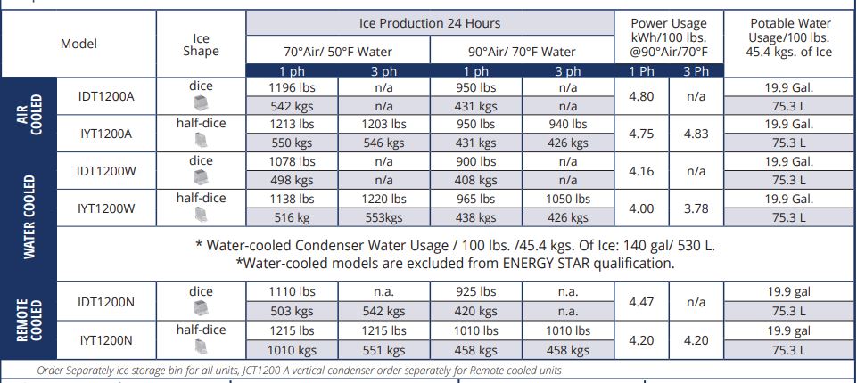 Depending on ambient conditions, the Manitowoc Ice IDT1200A Indigo NXT™ ice machine head produces approximately 1,196 pounds of full cube ice in a 24-hour period. Its condenser is air cooled, so setup and maintenance is simpler than water-cooled units. The DuraTech® exterior resists corrosion better than stainless steel, while its clear coat reduces fingerprints and dirt residue, streamlining cleanup.