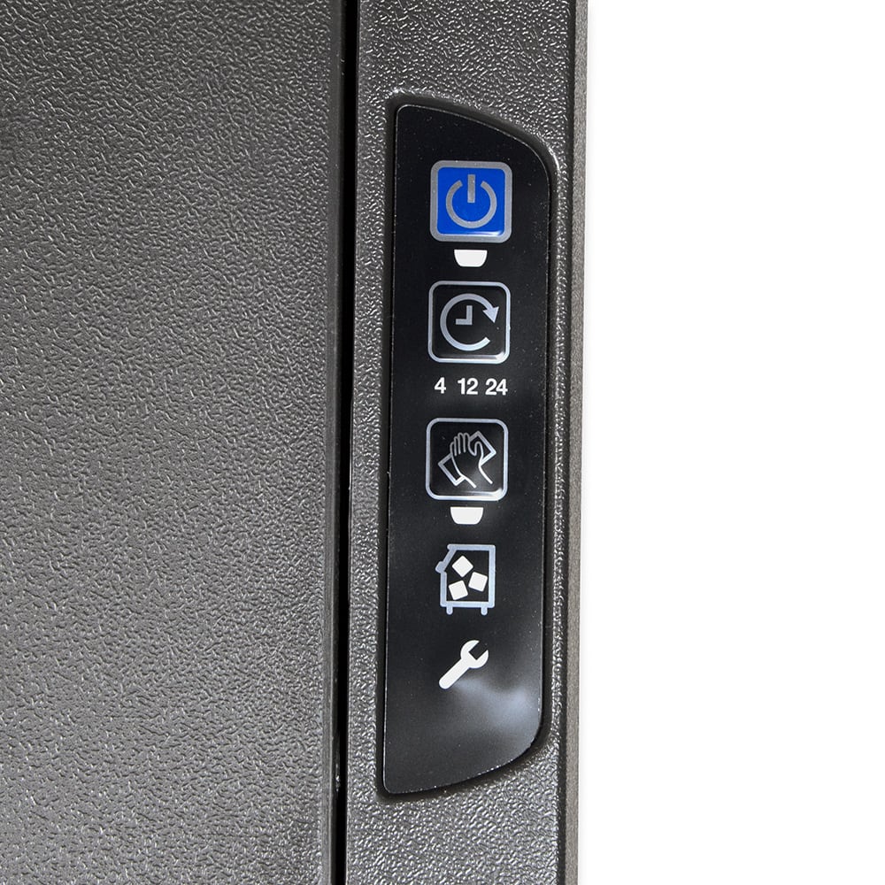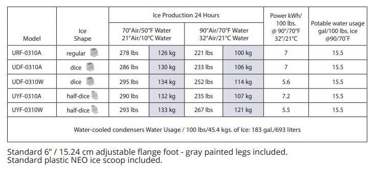 In a day, the Manitowoc Ice UDF0310A NEO® ice maker produces as much as 286 pounds of dice ice, depending on the ambient air temperature and incoming water temperature. The lower these levels are, the more ice the unit will produce. Ideal for cocktails and beverages, the dice ice cubes are 7⁄8 inches by 7⁄8 inches by 7⁄8 inches, melt slowly, and can be stored in the 100-pound capacity, insulated bin. Ice is accessible through the slide-up door, and the operator can delay ice production during slow periods.