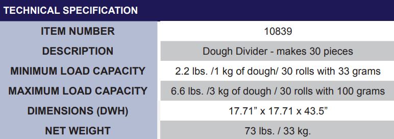 DESCRIPTION: Dough Divider – makes 30 pieces