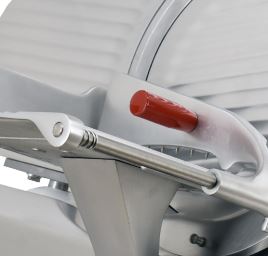 Our meat slicers are composed of high-quality European grade material; composed of anodized aluminum alloy, and boosts a powerful motor that meets quality European standard. The high carbon steel blades are hard chromed, with a hollow ground taper for extended sharpening and blade life. This belt driven machine offers exceptional cutting consistency and durability. The carriage moves smoothly on ball bearings allowing effortless cutting of deli meats and vegetables. Easy to disassemble for quick cleaning. Perfect for low volume operations.