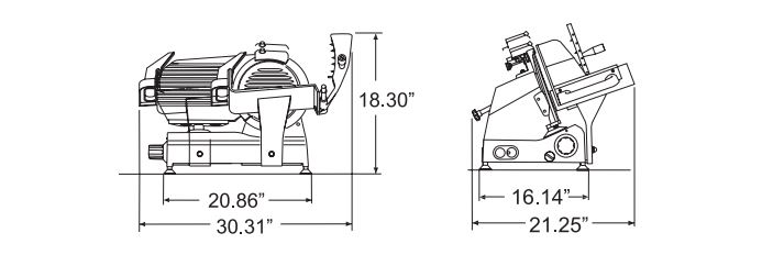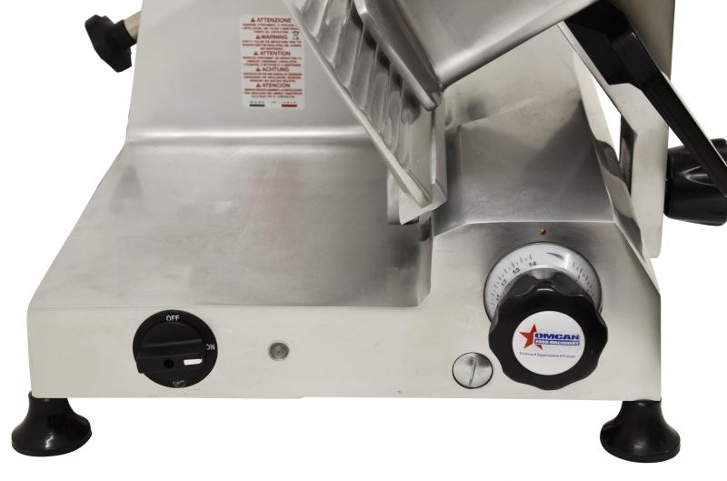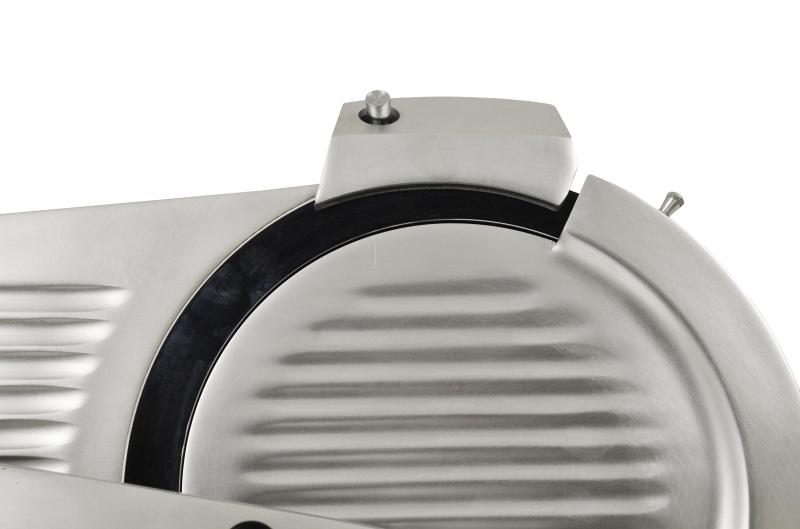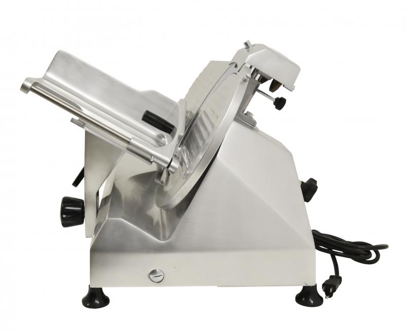Our meat slicers are composed of high-quality European grade material; composed of anodized aluminum alloy, and boosts a powerful motor that meets quality European standard. The high carbon steel blades are hard chromed, with a hollow ground taper for extended sharpening and blade life. This belt driven machine offers exceptional cutting consistency and durability. The carriage moves smoothly on ball bearings allowing effortless cutting of deli meats and vegetables. Easy to disassemble for quick cleaning. Perfect for low volume operations.