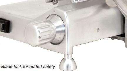 Omcan’s 12-inch blade slicer have anodised aluminium alloy body. The high carbon steel blades are hard chromed, with a hollow ground taper for extended sharpening and blade life. This belt driven machine offers exceptional cutting consistency and durability. The carriage moves smoothly on ball bearings allowing effortless cutting of deli meats and vegetables. Easy to disassemble for quick cleaning. Perfect for low volume operations.