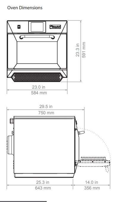 W x D x H: 22″ x 25 3/8″ x 23 1/4″ (55.9 cm x 64.5 cm x 59.1 cm)