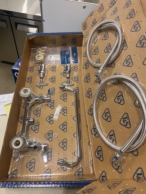 New Commercial Faucet with 12″ Swing Nozzle Wall Mount 8″ Centers with Kit