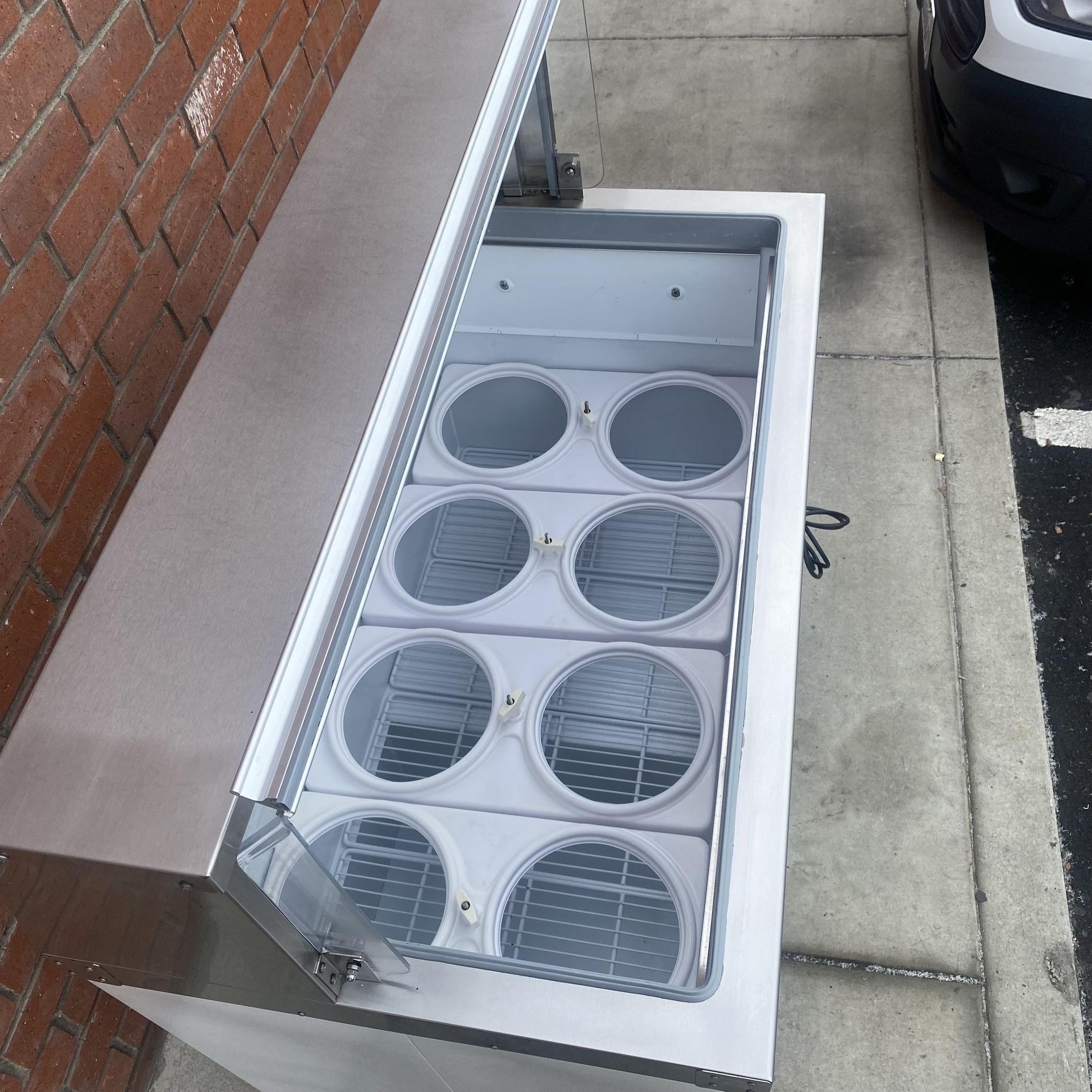 You are viewing a brand new Master Bilt DD-46L High Quality Low Glass Ice Cream Dipping Cabinet . It is brand new in the original packaging as shown in the last few pictures. It measures 48-1/4″ W x 27-1/2″ D x 50″ H. Holds 8 x 3 gallon ice cream pails with room to store 4 more beneath. 115V maintains -15C to -20C temperature. Includes 8 pail holder kit worth $1600+. These are made in USA and sell new for $9800+. We also sell other new models and have financing options. Our Clearance Warehouse is located in the Foothills Industrial Park #5, 6613 – 44th Street SE, Calgary, AB. Open Monday to Friday 9am to 5pm.